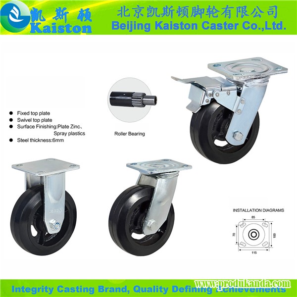 1.Rubber wheel+Iron Core 3.Surface: Plate Zinc or Spray Plastic 4.Bracket Thickness: 6.0MM |